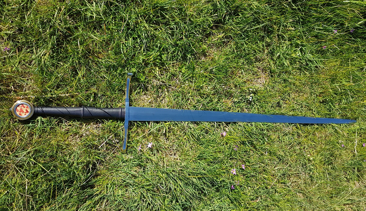 Craig from Manning Imperial made a longsword for me, which is a present from Margaret Swan. It is based on the Munich Sword, but the inscription was changed (from: oh maria, hilf mir bit) to bonitas (kindness) on one side and ratio (reason) on the other side, and the pommel inserts reflect my heraldry.