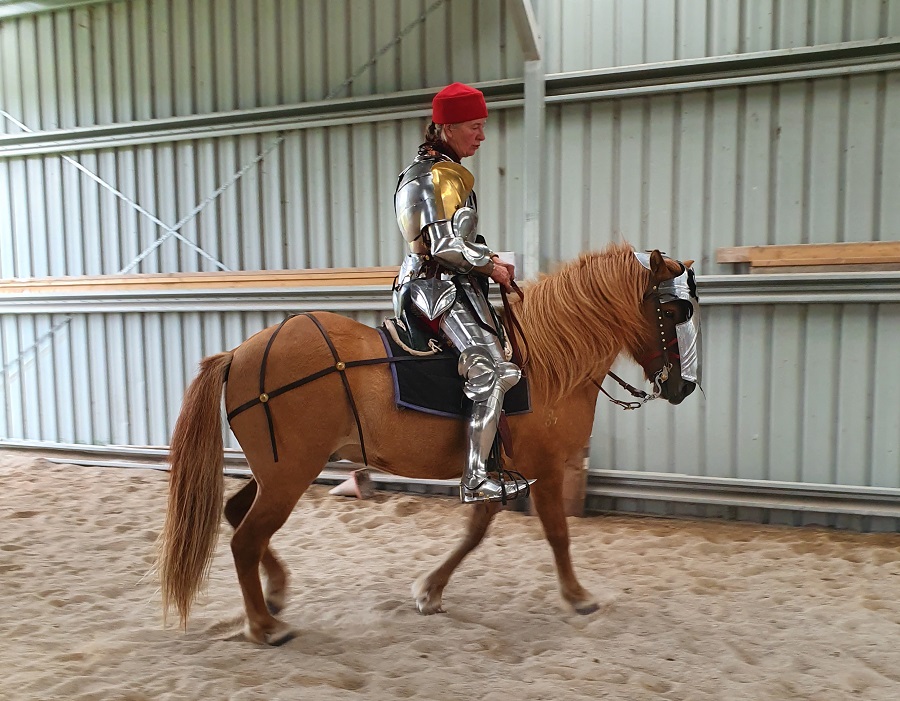 Keldan has done skill at arms, jousting and horse archery. He has been to a bunch of dressage, mounted combat, horse archery and other clinics under several different riders. He was successful at the 2019 Victorian Horse Archery Championships.