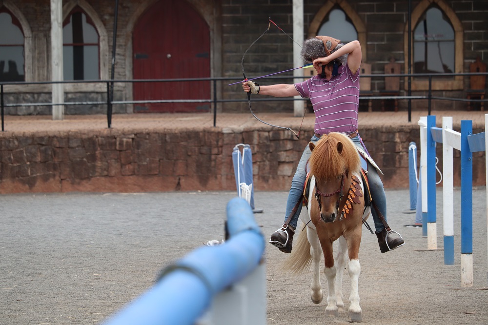 Sparky is my main horse archery mount and lesson horse. He is small, but he is mighty. He is a veteran of horse archery and skill at arms competitions, winning and placing under different riders. He has been to a lot of training days, horse archery club days and mounted combat clinics, and he was in Historical Equestrian Combat Symposium at Kryal Castle in 2018 and 2019. He is safe enough for beginners and children, yet gives experienced riders fun rides. He is a super horse whenever a steady, smooth canter is needed, or for that matter a smooth toelt. He is great with everything we throw at him and rises to any challenge.